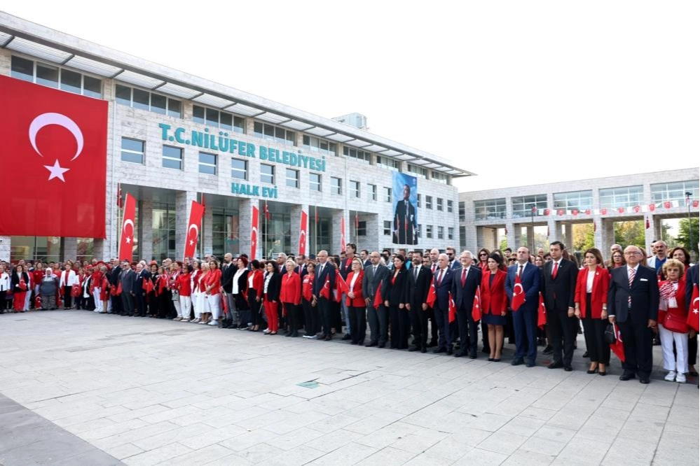 Cumhuriyet Bayramı 100. yılında Nilüfer’de görkemli törenlerle kutlanıyor. Günün ilk töreni Nilüfer Cumhuriyet Meydanı’ndaki Atatürk Anıtı’nda gerçekleştirildi. Nilüfer Belediye Başkanı Turgay Erdem, eşi Zeynep Terzioğlu Erdem, geçmiş dönem Nilüfer Belediye Başkanı ve Bursa Büyükşehir Belediye Başkan Adayı Mustafa Bozbey, CHP Nilüfer İlçe Başkanı Özgür Şahin, İYİ Parti Nilüfer İlçe Başkanı Levent Öncü, Bulgaristan Bursa Konsolosu Ticari Ateşesi Lyubomir Lyubenov,siyasi parti ve sivil toplum örgütlerinin temsilcileri ile çok sayıda vatandaş katıldı. Çelenklerin Atatürk Anıtı’na sunulmasının ardından saygı duruşunda bulunuldu ve İstiklal Marşı okundu. Bütün Türkiye’nin Cumhuriyet’in 100. yılını kutlamanın gururunu yaşadığını ifade eden Nilüfer Belediye Başkanı Turgay Erdem, “Bugün burada kutsal emaneti, ikinci yüzyıla taşımanın mutluluğunu paylaşıyoruz. 100 yıl önce karanlığın ortasında bir güneş gibi doğmuş, en büyük devrimlerle bu ülkede aydınlık bir çağı başlatmış olan Cumhuriyet’in 100 yıllık tarihi eşiği atlamış olmasının gururunu paylaşıyoruz” diye konuştu. Cumhuriyet’in bu 100 yılda pek çok badireler atlattığını ifade eden Başkan Erdem, ama her şeye rağmen ayakta kaldığını ve ayakta kalmaya da devam edeceğini söyledi. Başkan Erdem konuşmasına şöyle devam etti: “Görüyorsunuz yaşadığımız dönem de çok sancılı. Bir yanımızda vicdanını, aklını kaybetmiş bir savaş var. Masum insanlar, çocuklar ölüyor. Vicdanımızı kanatan bu savaşı lanetliyoruz. Öte yanda memleketin içinde olduğu gerçekler, gelecek endişelerimiz var. Laiklik gibi Cumhuriyet’in en temel dayanakları endişe verici girişimlerle yara alıyor. Bugün, okullarda imamların derse girmesinden, anaokullarına mescit zorunluluğundan bahsediyoruz. Halen kadın-erkek eşitliğini münazara ediyoruz. Oysa biz bu konuları 100 yıl önce çözmüştük. Yani geldiğimiz noktada bugün Cumhuriyet kazanımlarına daha çok sahip çıkmamız gerekiyor.” Atatürk’ün 10. Yıl Nutku’ndaki “Az zamanda büyük işler yaptık. Ama bunlar asla yeterli değil. Yurdumuzu dünyanın en medeni memleketleri seviyesine çıkaracağız” sözlerine dikkat çeken Başkan Erdem bu hedefe ulaşılması için çok çalışmak gerektiğinin de altını çizdi. Başkan Erdem, “Cumhuriyet değerlerine inanan herkes omuz omuza bu hedefe yürümeli. Ezilen tüm dünya halklarına örnek olan Cumhuriyet, inanıyoruz ki yeni neslin omuzları üzerinde sonsuza dek yaşayacaktır. Tarihin en büyük devrimcisi Atatürk’ün, ‘Yurtta sulh, dünyada sulh’ sözünün altını çizerek, ülkemiz için ve tüm dünya halkları için savaştan uzak, barış ve huzur dolu bir gelecek diliyorum” sözleriyle konuşmasını tamamladı.