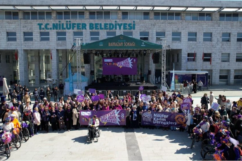 Nilüfer Belediyesi ve Nilüfer Kent Konseyi, 8 Mart Dünya Kadınlar Günü'nde geniş katılımlı bir yürüyüş ve basın açıklaması düzenledi. "Eşitlik Ses İster, Biz Buradayız" sloganıyla Nilüfer Kent Konseyi önünde başlayan yürüyüşte kadınlar, eşitlik ve direniş sloganları eşliğinde Nilüfer Belediyesi Halk Evi önündeki Cumhuriyet Meydanı'na kadar yürüdü. Etkinliğe, Nilüfer Belediye Başkan Yardımcıları Serpil Altun ve Bukle Erman ve meclis üyeleri ile Nilüfer Belediye Başkanı Şadi Özdemir'in eşi Nuray Özdemir de katıldı. Korteje, Nilüfer Kent Konseyi Bisiklet Çalışma Grubu da bisikletleriyle eşlik etti.