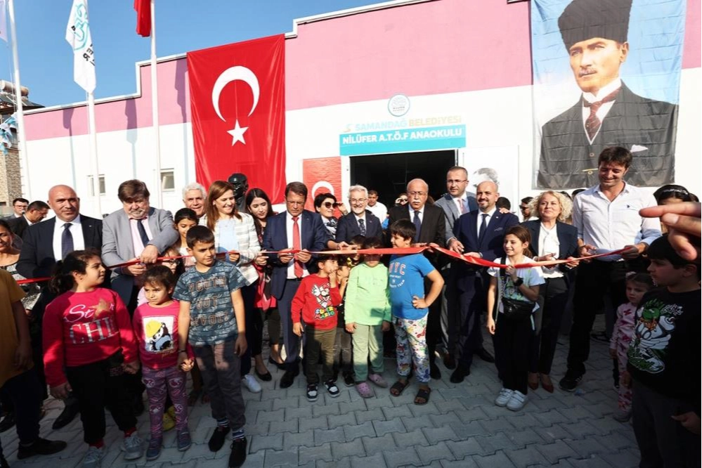 Nilüfer Belediyesi öncülüğünde, Samandağ Belediyesi’nin yanı sıra, Almanya Türk Öğretmen Dernekleri Federasyonu ve Nilüfer’deki kadın derneklerinin destekleriyle Hatay Samandağ’da hayata geçirilen anaokulu, düzenlenen törenle hizmete açıldı.