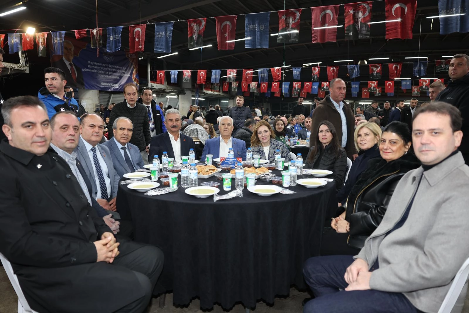 GÖNÜL SOFRASI OSMANGAZİ’DE KURULDU Bursa Büyükşehir Belediye Başkanı Mustafa Bozbey ve eşi Seden Bozbey de Osmangazi ilçesi Fatih ve Çiftehavuzlar Mahallesi’nde yer alan Kapalı Pazar Alanı’ndaki iftar programına katıldı. Gençlerin sloganlarla ve coşkuyla karşıladığı Başkan Mustafa Bozbey, masaları tek tek gezerek vatandaşlarla sohbet etti. CHP İl Başkanı Nihat Yeşiltaş, Büyükşehir Belediyesi Genel Sekreteri Ali Altunsoy, siyasi partilerin temsilcileri, sivil toplum kuruluşlarının temsilcileri, muhtarlar ve Büyükşehir Belediyesi yöneticilerinin de yer aldığı programda, vatandaşlar akşam ezanıyla birlikte oruçlarını açtı.