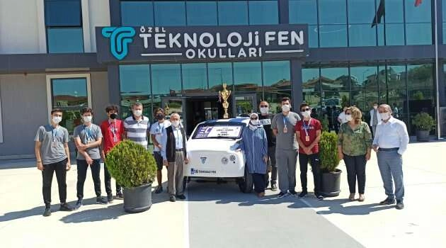 Cumhurbaşkanı Recep Tayyip Erdoğan tarafından geçtiğimiz aylarda temeli atılan yerli otomobil fabrikası TOGG, Bursalı öğrencilerin ufkunu genişletti. Bugüne kadar elektronik alanda bir çok yeniliğe imza atan liseli gençler, artık baş başa verdikleri üniversiteli abi ve ablalarıyla kendi arabalarını bile üretebilecekleri hedeflere yelken açtı. Türkiye Bilimsel ve Teknolojik Araştırma Kurumu (TÜBİTAK) tarafından, TEKNOFEST İstanbul Havacılık, Uzay ve Teknoloji Festivali kapsamında bu yıl 16'ncısı tertip edilen TÜBİTAK Efficiency Challenge Elektrikli Araç Yarışları için Bursa'dan alkışlar eşliğinde uğurlanan Verd-e, yarışmada en iyi görsel tasarım ödülünü aldı. TÜBİTAK tarafından uluslararası çapta 16’ncısı düzenlenen alternatif enerjili araç yarışları bin 500 öğrencinin iştirakiyle İzmit Körfez Yarış Pisti’nde gerçekleştirildi. Üç günlük teknik kontrollerin ardından yarışmaya katılmaya hak kazanan Teknoloji Fen Racing Team, ilk defa lise öğrencilerinin yer aldığı takım olarak yarışmaya damgasını vurdu. İşte lise öğrencilerinin tasarladığı SUV araç Lise ve üniversite öğrencilerinin ortak tasarladığı tasarımıyla göze hoş gelen SUV, 90 kilometre hızla yaklaşık 100 kilometre mesafeyi kat edebiliyor. Şebekeden direk olarak 5 ile 6 saat içerisinde bataryalarını yüzde yüz şarj edebilen otomobil, hızlı şarj teknoloji sayesine ise 1 saat gibi kısa bir sürede de şarj edilebiliyor. Uzun süredir bu proje üzerinde uğraştıklarının belirten Teknoloji Fen Koleji 12. sınıf öğrencisi Emir Hamdemirci, “Hayalimizin gerçeğe dönüştüğünü görmek ve en önemlisi ilk defa katıldığımız yarıştan ödül alarak dönmek bizleri çok mutlu etti. Aracımızın tasarımı salgın sürecine denk geldi fakat vazgeçmeden çalışmalarımıza tüm hızıyla devam ettik. Bugün burada bir yıllık emeğimizin karşılığını aldık. Önümüzdeki yarış için şimdiden çalışmaya başlayarak yeni ürünümüzü ortaya çıkaracağız. Başarılarımızın devam etmesi için elimizden geleni yapmaya devam edeceğiz. Bize inanarak hayallerimizin gerçeğe dönüşmesi için gereken her türlü desteği sağlayan okulumuz Yönetim Kurulu Başkan Yardımcısı Abdulvahhap Atış’a çok teşekkür ederiz” dedi.” Gurur bütün Bursa'nın Özel Teknoloji Fen Koleji Yönetim Kurulu Başkanı M. Naci Atış, "Bu ödülü bizim yaklaşık 25 senelik eğitim hayatımızın bir meyvesi olarak görebiliriz. 1995 yılında Bursa'da Kültür Dershaneleri olarak eğitim faaliyetine başladığımızda işin buralara geleceğini ben tahmin ediyordum. 2002 yılında okulculuk faaliyetine başladık. 2016 yılında ise artık bir üst kademeye hem Türkiye'nin hemde dünyanın geleceği olan teknoloji faaliyetlerine el atmamız gerektiğinin farkına vardık. Dolayısıyla 2017'den itibaren de Teknoloji Fen Lisesi olarak hummalı bir şekilde çalışmalarımızı sürdürdük. Bu ödül sadece bizlerin bir kişinin yada iki kişinin değil, çaycımızdan hizmetlimize, bilgi işlemcimizden fotokopicimize, öğretmenlerimizden müdürümüze kadar herkesin emeği ile kazanıldı. Bu başarıyı ben sadece Teknoloji Fen Koleji'nin değil Bursa'nın başarısı olarak Bursalılara armağan etmek istiyorum" şeklinde konuştu.