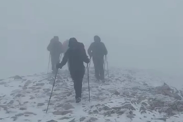 Bursa Yıldırım Dağcılık Kulübü ile Bursa Dağcılık ve Doğa Sporları İhtisas Kulübü üyeleri Uludağ'ın 2543 metrelik zirvesine kış sezonunun tırmanışını gerçekleştirdi. 2543 metrelik zirveye fırtına ve kar yağışı altında yürüyen dağcılar sezonun ilk kar yağışını kutladı. İki barajın tamamen kuruduğu, su kesintilerinin yaşandığı şehirde kar yağışı da dağcılar ve vatandaşların yüzünü güldürdü. Cumartesi gecesi de hava sıcaklığının eksi 7 dereceye düşmesiyle zirvede yeniden kar yağışı bekleniyor.