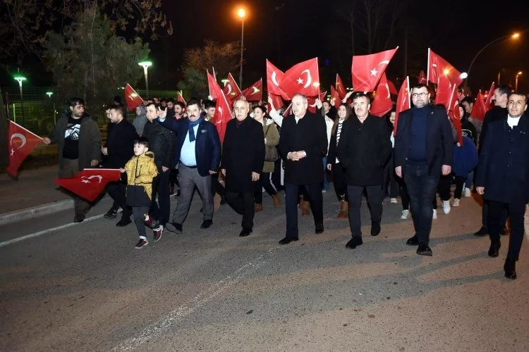 Ülkü Ocakları Bursa Yenişehir Başkanlığı teröre lanet ve Şehitlere Saygı yürüyüşü gerçekleştirdi. Yürüyüşe çok sayıda vatandaş bayraklarıyla katıldı.