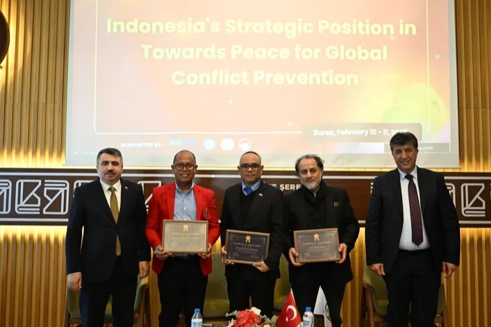 Mümine Şeremet Uyumayan Kütüphanesi’nde düzenlenen 3. Uluslararası Öğrenci Sempozyumu’na Uludağ Üniversitesi Öğretim Üyesi Prof. Dr. Bülent Şenay, Hasanuddin Üniversitesi Öğretim Üyesi Prof. Dr. Muhammad Nasır Badu, Endonezya Cumhuriyeti Başkonsolosluğu Enformasyon ve Sosyo-Kültürel İşler Koordinatörü Hardiyono Kurniawan katıldı. "Küresel Çatışmanın Önlenmesinde Endonezya'nın Barışa Yönelik Stratejik Pozisyonu" üzerine konuşulan sempozyumda küresel sorunlarda çatışma ve çözüm yeniden tartışıldı.
