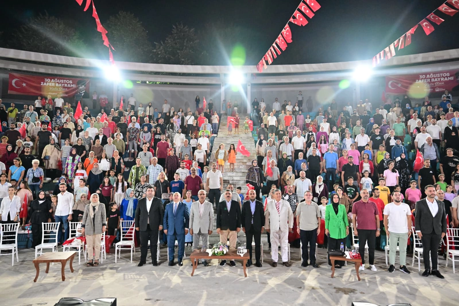 Türk Milleti’nin 30 Ağustos’ta iradesine boyunduruk vurdurmayacağını, istiklal ve istikbaline gölge düşürmeyeceğini bütün dünyaya ilan ettiğini söyleyen Başkan Yılmaz, “Gazi Mustafa Kemal Atatürk’ün sözleriyle 30 Ağustos Zaferi, “Türk Ordusunun, Türk subay ve komuta heyetinin yüksek kudret ve kahramanlığını tarihte bir daha belirleyen çok büyük bir eserdir.’ O gün atalarımızın yaktığı bağımsızlık meşalesi, bugün de aynı inançla, aynı heyecanla yolumuzu aydınlatmaya devam ediyor. Bu duygu ve düşüncelerle Cumhuriyetimizin kurucusu, Büyük Taarruzun Başkomutanı Gazi Mustafa Kemal Atatürk’ü, silah arkadaşlarını, bu toprakları bize vatan kılan tüm kahramanlarımızı, şehitlerimizi ve gazilerimizi rahmet ve minnetle anıyorum” ifadelerini kullandı. Daha sonra sahneye çıkan Türk Halk Müziği Sanatçısı Esat Kabaklı, seslendirdiği kahramanlık türküleriyle unutulmaz bir gece yaşattı.