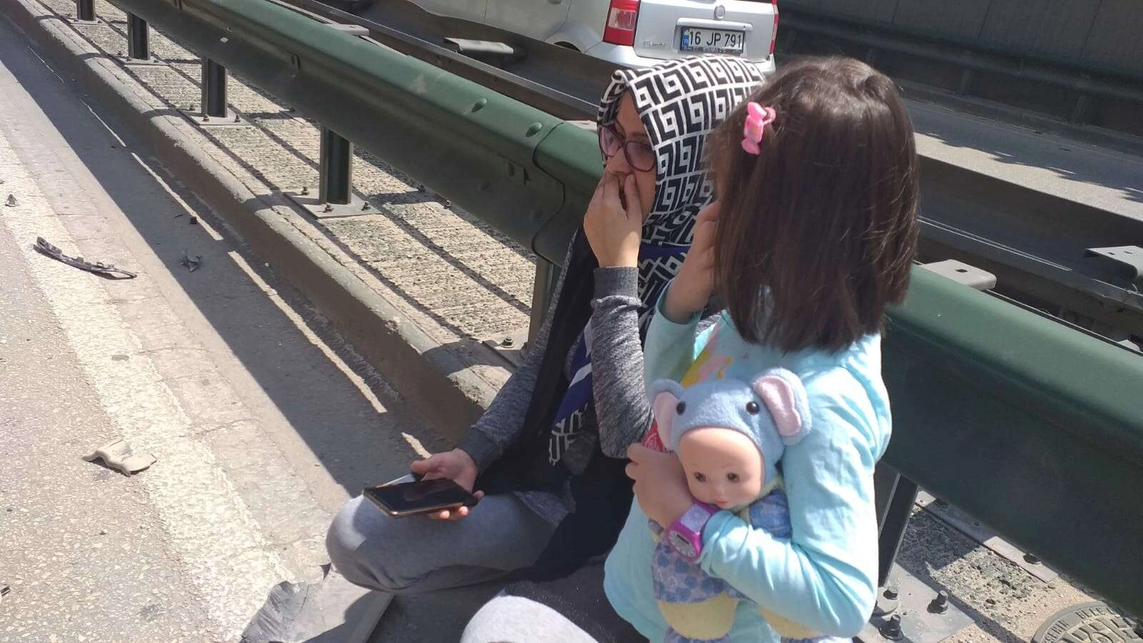 BURSA'da hafif ticari aracın sürücüsü Elif Seymen'in alt geçitte bariyerlere vurması sonucunda arkadan gelen 3 araç birbirine çarparak zincirleme kazaya yol açtı. 4 aracın karıştığı kazada biri çocuk 3 kişi hafif yaralandı. Yaralı çocuk elindeki oyuncağı bırakmazken, onlarca kişi köprünün üzerinde kaza yerini izledi.