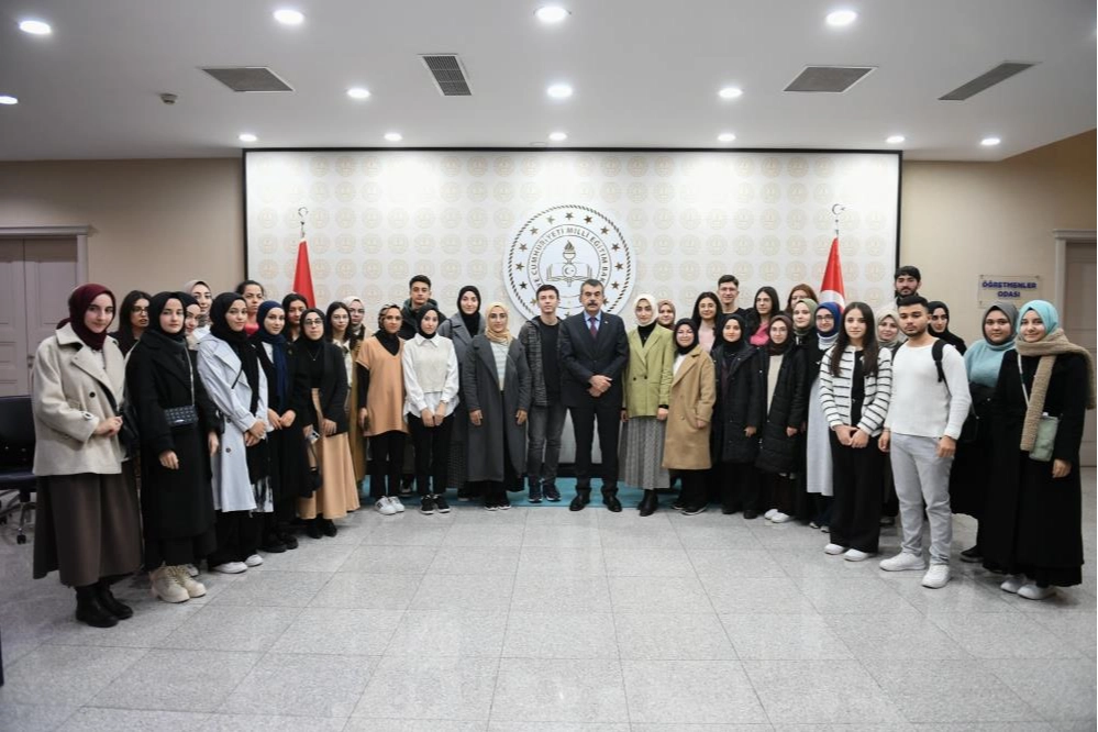 Faaliyetlerini aktif olarak sürdüren BUÜ Hür Eğitimciler Topluluğu, geniş bir Ankara gezisi düzenledi. Çok sayıda öğrencinin katıldığı gezi programı Cumhurbaşkanlığı Külliyesi’ndeki Beştepe Camii ziyaretiyle başladı. Millet Kütüphanesi’ni de ziyaret ederek, mevcut eserleri inceleyen topluluk üyeleri, Milli Eğitim Bakanlığı Personel Dairesi Genel Müdürü Bünyemin Çiftçi ile bir araya geldi. Öğrenciler, eğitim politikalarına dair görüş alışverişinin ardından Milli Eğitim Bakanı Yusuf Tekin’in konuğu oldu. Öğrencilerle bir araya gelen Bakan Yusuf Tekin, devam eden çalışmalar hakkında açıklamalarda bulundu. Topluluk üyeleri de uzun süredir yürüttüğü sosyal sorumluluk faaliyeti “Bir İyilik Yolculuğu” projesini anlatmalarıyla program sona erdi.