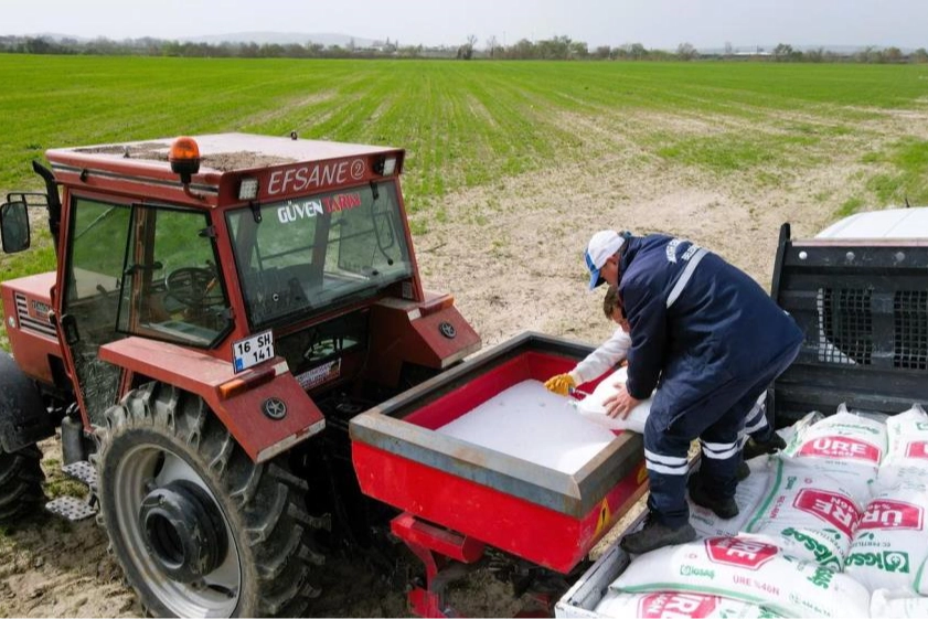 Çiftçiler uygulamadan dolayı Başkan Mustafa Bozbey'e teşekkür ettiler. Organik sıvı gübre uygun fiyatla çiftçilere verilecek. Kimyasal gübrelemenin azaltılmasını sağlamak, toprakların organik madde miktarını yükselterek mikroorganizmaların etkinliğini artırmak, verimliliği artırarak çiftçilerin gelirini yükseltmek ve en önemlisi de gıda güvenilirliğini artırmak hedefiyle çalışmalarını yürüten Tarım A.Ş, Balıkesir'in Bandırma ilçesindeki bir gübre tesisinin makine ve ekipmanlarını satın aldı. Bu alımlarla ilk olarak şirketin Mustafakemalpaşa ilçesi Ovaazatlı Mahallesi'ndeki üretim alanında tesisin tadilat işlerini başlayan Tarım A.Ş, tescil ve lisans çalışmaları kapsamında Gübre Dağıtıcılık Belgesi ve Gübre Üretim Yeri Uygunluk Belgesi'ni, Bursa İl Tarım ve Orman Müdürlüğünden aldı. Büyükşehir Belediye Başkanı Mustafa Bozbey, çiftçinin maliyetlerinin sürekli arttığını belirterek, üreticilerin sırtındaki yükü azaltmak amacıyla farklı destek programlarını hayata geçirdiklerini söyledi. Çiftçilere dağıtılmak üzere üretilen sıvı gübrede ilk uygulama bir buğday tarlasında gerçekleştirildi. Organik sıvı gübre yıllık 500 ton olarak Mustafakemalpaşa'daki tesiste üretilecek. Gerçekleştirilen bu ilk denemeyle, toprak kalitesinin artırılması, kimyasal gübre kullanımının azaltılması ve tarımsal üretimde sürdürülebilir bir model oluşturulması hedefleniyor. Mustafakemalpaşa ziyaretinde açıklama bulunan Bursa Büyükşehir Belediye Başkanı Mustafa Bozbey, ‘’Üretimde kullanılacak makine ve ekipman satın alım süreçleri tamamlandı. Yıllık üretim kapasitesi 500 ton olacak tesisimizi yakında açmayı planlıyoruz. Gübreler destek programlarımız çerçevesinde çiftçilere çok uygun fiyatlara verilecek" dedi.