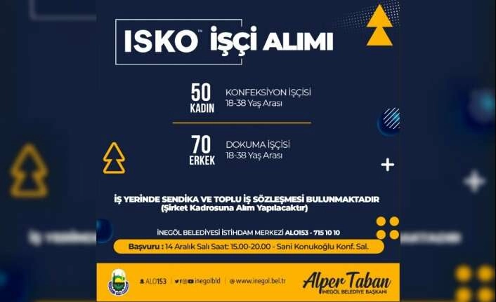 İnegöl Belediyesi’nin 2018 yılı Kasım ayında iş arayan vatandaşlar ve işverenleri buluşturabilmek için kurduğu İstihdam Merkezi, üretim üssü İnegöl’ün istihdamına katkı sağlamaya devam ediyor. Bir yandan iş arayan vatandaşları havuzunda toplayıp, bir yandan da eleman arayan firmalarla iletişimini sürdürerek doğru işe doğru kişiyi yönlendirme görevi üstlenen İstihdam Merkezi, geçtiğimiz haftalarda 280 personel alımı yapan İSKO firması için 120 personel alımı yapılacak yeni bir iş duyurusu daha paylaştı. İSKO 120 personel alacak İnegöl Belediyesi İstihdam Merkezinden yapılan açıklamada, İnegöl Organize Sanayi Bölgesinde üretimini sürdüren İSKO tekstil firmasında çalışmak üzere personel alımı yapılacağı duyuruldu. Açıklamada şu ifadelere yer verildi: “İstihdam Merkezimizle işbirliği yapan İSKO firması; üretim alanında konfeksiyon işçisi olarak 18-38 yaş aralığında 50 kadın ve dokuma işçisi olarak 18-38 yaş arası 70 erkek personel alımı yapacağını duyurdu. Ayrıca işyerinde sendika ve toplu iş sözleşmesi bulunduğu, alımların da şirket kadrosuna yapılacağı ifade edildi. Başvurular 14 Aralık Salı günü 15.00-20.00 saatleri arasında Sani Konukoğlu Konferans Salonunda alınacak. Yapılacak alımla ilgili detaylı bilgi almak isteyen vatandaşlar 153 hatları üzerinden ve 0 224 715 10 10 Nolu telefondan İnegöl Belediyesi İstihdam Merkezine ulaşabilirler.”