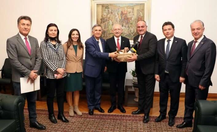 Gemlik Belediye Başkanı Mehmet Uğur Sertaslan, Ankara’da TBMM’yi ziyaret ederek çeşitli temaslarda bulundu. Başkan Sertaslan’a 24. Dönem Milletvekili ve Gemtar Yönetim Kurulu Başkanı İlhan Demiröz eşlik etti. CHP Genel Başkanı Kemal Kılıçdaroğlu Gemlik Belediye Başkanı Mehmet Uğur Sertaslan’ı TBMM’deki makamında ağırladı. Başkan Sertaslan, Gemlik’te yaptıkları sosyal, kültürel ve yapısal projelerle birlikte üreticiye verdikleri destekler konusunda Kılıçdaroğlu’na bilgi verirken “Genel Başkanımızın yaptığımız projeleri beğeniyle karşılaması bizler için memnuniyet verici oldu. Türkiye’nin en kaliteli sofralık zeytinini daha geniş kitlelere ulaştırmak için yaptığımız projenin ilk ürünlerini Genel Başkanımıza takdim ederken, zeytinimizin oluşum süreciyle alakalı bilgi verdim. Gemlik Belediyesi olarak üreticilere verdiğimiz destekleri aktarma fırsatımız oldu. Bursa’nın tek toprak, yaprak ve su analiz laboratuvarının açılışa hazır olduğunu ve çiftçimizin artık bilimsel tarım yapacağını Genel Başkanımız Kemal Kılıçdaroğlu’na aktardım. Bizleri Ankara ziyaretimizde yalnız bırakmayan Genel Başkan Yardımcımız Lale Karabıyık’a, Bursa Milletvekillerimiz Orhan Sarıbal, NurhayatAltaca Kayışoğlu, Erkan Aydın ve Yüksel Özkan’a teşekkür ediyorum” dedi. Sertaslan, Genel Başkan Kılıçdaroğlu’nun ardından CHP Grup Başkan Vekili Özgür Özel ve İYİ Parti Grup Başkanı İsmail Tatlıoğlu’nu makamlarında ziyaret etti.