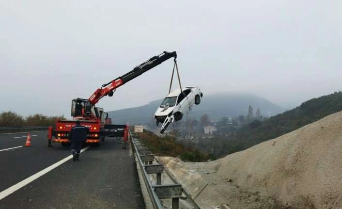 Kaza sabah 08.00 sıralarında Gebze-Orhangazi-İzmir otoyolu, Karsak kavşağı yakınlarında meydana geldi. Alınan bilgiye göre; İstanbul'dan Bursa istikametine giden B.K. (23) idaresindeki 16 NPA 32 plakalo otomobil Karsak kavşağı yakınlarında sürücüsünün direksiyon hakimiyetini kaybetmesi sonucu yoldan çıktı. Yol kenarında bariyerleri aşan otomobil takla atarak şarampole uçtu. Kazada otomobilde bulunan sürücü B.K. ile birlikte A.S. (20), S.S.B.(20) ve B.U.(19) yaralandı. Yaralılar olay yerine çağrılan ambulanslarla Orhangazi Devlet Hstanesine kaldırıldı. Yaralıların hayati tehlikeleri bulunmadığı belirlenirken, şarampole uçan otomobil vinç yardımı ile bulunduğu yerden kaldırıldı. Jandarma ekipleri kaza ile ilgili soruşturma başlattı.