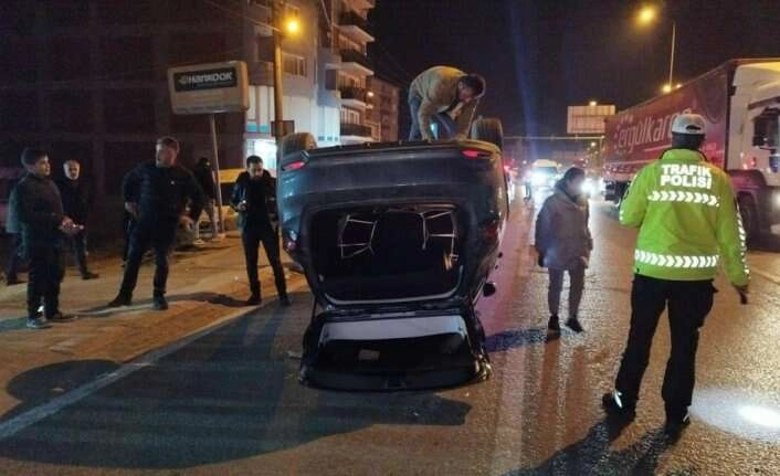 Kaza, saat 20.30 sıralarında Orhangazi’de anayol İznik Kavşağı yakınlarında meydana geldi. Alınan bilgilere göre, sürücüsü henüz tespit edilemeyen 16 AKM 105 plakalı bir otomobil Bursa istikametinden Yalova istikametine doğru seyir halindeyken sürücüsünün kontrolünden çıktı. Kaldırıma çarpan otomobil takla atarak ters döndü. İddiaya göre, kaza sonrasında otomobil içinden kendi imkanları ile çıkan 3 kişi aracı olay yerinde bırakarak kaza yerini terk etti. Kaza yerine gelen polis ekipleri görgü tanıklarının ifadelerine göre araç sahibi ve araçtan inen kişileri aramaya başladı. Kaza yapan araç çekici yardımı ile bulunduğu yerden kaldırılırken, kaza ile ilgili soruşturma başlatıldı.