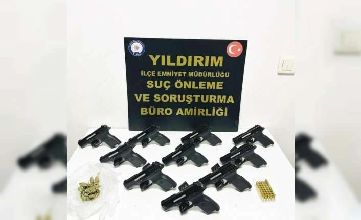 Yıldırım İlçe Emniyet Müdürlüğüne bağlı Yıldırım SÖS Büro Amirliği ekipleri, ihbar üzerine takibe aldığı S.Y.’nin (28), Gürsu İlçesi Yenidoğan Mahallesi Ömer Duruk Caddesi üzerinde bulunan bir iş yerinde madde bulundurduğunu tespit ederek operasyon düzenledi. Cumhuriyet Savcılığının talimatı ile baskın düzenlenen iş yerinde uyuşturucu 10 adet 7.65 mm çapında ruhsatsız tabanca, 36 adet 9.19 mm çapında fişek ve 23.48 gram esrar ele geçirdi. Polis ekiplerince iş yerinde yakalanan ve 12 suç kaydı bulunan S.Y. gözaltına alınırken, emniyetteki işlemleri devam ediyor.