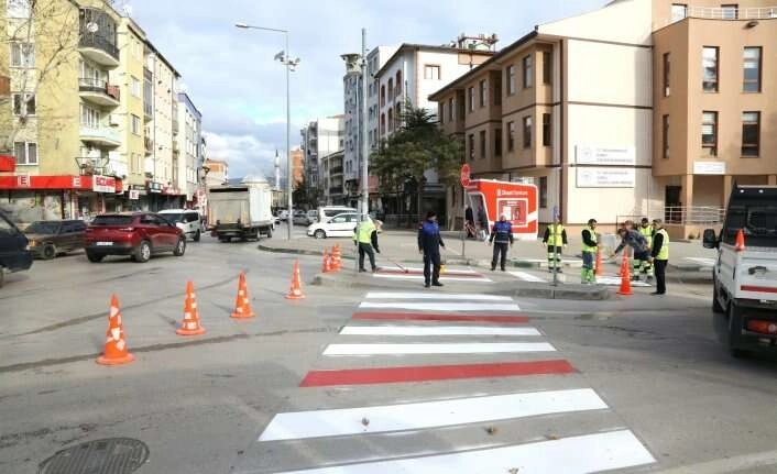 Büyükşehir Belediyesi’nin koordinasyonunda, ana caddelerde yapılan çalışmalarla, yayaların caddelerde karşıdan karşıya geçiş üstünlüğünü belirten farkındalık uyarı işaretleri de oluşturuldu.