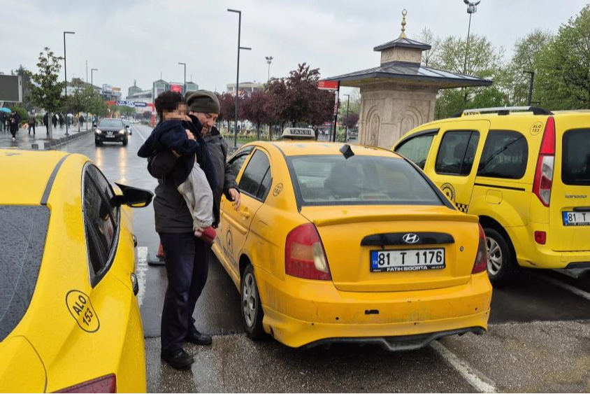 Düzce Valiliği önündeki durağa müşterisini bırakıp dönen bir taksici, kaldırımda tek başına bekleyen, üstü çamurlu ve ıslak olan 3 yaşında yabancı uyruklu çocuğu fark etti. Kaybolduğunu düşündüğü çocuğu hava soğuk olduğu için hemen taksisine alan taksici, durağa gelerek önce ısıttı. Yağmur sebebiyle üstü ıslak olan çocuğu ısıtmak için soba başına oturtan taksiciler, yeni kıyafette aldı. Taksiciler meyve suyu ve poğaça vererek miniğin karnını da doyurdu. Taksi şoförlerinden Halil İlhan, "Çocuk gidiyordu. Sahipsiz ve kayıp olduğu belliydi. Arkadaşlarımız biraz takip ettiler. Yanında annesi veya babası var mı diye baktılar. Bulamayınca biz çocuğu alıp, durağımıza getirdik. Üstü, başı perişandı. Hemen yeni kıyafetler aldık. Bir de karnının aç olduğunu düşündük. Isıtıcıyı da yaktık. Sonra polisler geldi ve hemen ailesini buldular. Ailesine teslime ettik" dedi. Ayrıca 112 acil çağrı merkezine de haber veren taksicilerin ihbarı ile olay yerine Düzce İl Emniyet Müdürlüğü Çocuk Şube ekipleri geldi. Ekipler yaptıkları çalışmanın ardından miniği ailesine teslim ettiler.