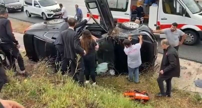 Edinilen bilgiye göre, Türkiye Büyük Millet Meclisi (TBMM) Başkanı Mustafa Şentop’un korumaları, Bursa Otoban Kuzey Gişeleri yakınlarında trafik kazası yaptı. 34 PT 6015 plakalı Volkswagen marka araç yağmur sebebiyle ıslanan yolda kayarak bariyerlere yan yattı. Kazayı gören vatandaşlar durumu 112 acil servis ekiplerine bildirdi. Kaza yerinde yaralananlara acil servis ekipleri müdahale etti. 4 korumanın yaralandığı kazada, can kaybı yaşanmadı.