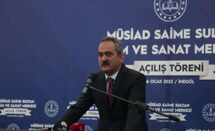 Milli Eğitim Bakanı Mahmut Özer, Bursa’nın İnegöl ilçesinde MÜSİAD Saime Sultan Bilim ve Sanat Merkezinin açılışına katıldı. Burada kısa bir konuşma yapan Bakan Özer, "Beşeri sermayeyi artırmanın en önemli enstrümanı eğitimdir. Maalesef 2000’li yıllara geldiğimizde eğitimde karnemizin çok iyi olmadığını görüyoruz. Son 20 yılda Cumhurbaşkanımızın liderliğinde eğitimde yapılan devrimsel dönüşümle, ilk kez bu ülkenin evlatları eğitimin tüm kademelere erişebilme mutluluğunu tattılar. Sadece karşılaştırma yapmak için rakamları verelim. 5 yaşındaki okullaşma oranları 2000’li yıllarda yüzde 11’dir. Şu anda bu oran yüzde 99’dur. İlkokul yüzde 99,63, ortaokul yüzde 99,44’tür. Orta öğretimdeki okullaşma yüzde 44’ten, yüzde 96’ya ulaştı. Yani ilk kez gerçekten sosyo-ekonomik dezavantajlı olan kesimin tamamı eğitime erişebildiler. Sadece bu yapılmadı. Eğitimin önündeki tüm anti demokratik uygulamalar kaldırıldı. Başörtüsü yasakları uygulandı bu ülkede. Mesleki eğitim ve imam hatip liselerinin dumura uğramasına sebep olan kat sayı uygulaması uygulandı. Bu anti demokratik uygulamaların tamamı bu dönemde kaldırıldı. 70 yıllık gecikme ile eğitimdeki tüm erişim problemleri çözülerek, Cumhurbaşkanımızın çerçevesini çizdiği Türkiye Yüzyılı'nın ilk adımı atılmış oldu. İnegöl’den Cumhurbaşkanımıza; gençlerimize, öğretmenlerimize verdiği değer için en içten saygılarımla teşekkür ediyorum" dedi.