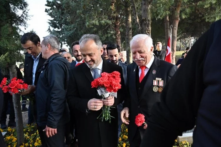 Çanakkale Zaferi’nin 109’uncu yıldönümü tüm yurtta farklı etkinlikle kutlanırken, Bursa’da düzenlenen törenlerde şehit ve gaziler anıldı. Bursa Valiliği tarafından düzenlenen 18 Mart Şehitler Günü programında ilk etkinliklerin adresi Hamitler Şehitliği oldu. Bursa Valisi Mahmut Demirtaş ve Bursa Büyükşehir Belediye Başkanı Alinur Aktaş ile Bursa protokolü ve şehit ailelerinin de katıldığı etkinlikte, çelenk sunumları, saygı atışı, İstiklal Marşı’nın okunması ve Türk Bayrağı’nın göndere çekilmesinin ardından şehitler dualarla anıldı. Bursa Büyükşehir Belediye Başkanı Alinur Aktaş, Vali Mahmut Demirtaş ile birlikte şehit mezarlıklarına karanfil bırakarak, şehit ailelerine çiçek takdiminde bulundu.