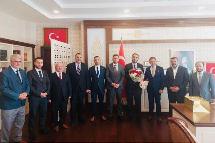 Milliyetçi Hareket Partisi Bursa İl Başkanı Muhammet Tekin, İl Başkan Yardımcısı Özgün Güneş, Türk Diyanet Vakıf-Sen Genel Başkan Yardımcısı Hilmi Şanlı, Bursa Şube Başkanı Eyüp Bulut ve İl Müftülüğü İş Yeri Temsilcisi Hasan Altay’dan oluşan heyet Bursa İl Müftüsü Yavuz Selim Karabayır’ı makamında ziyaret etti. “Her minareye bir bayrak, her minareye bir sancak” sloganıyla kampanya başlattıklarını söyleyen Tekin, “Türkiye Cumhuriyeti’nin 100. yılını idrak edeceğimiz 29 Ekim 2023 tarihinde ‘her minareye bir bayrak, her minareye bir sancak’ sloganımızla kuruluş şehri Bursa’da böyle bir kampanya başlatmak için ilk bayrağımızı da size takdim etmek istiyoruz” dedi.