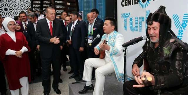 Cumhurbaşkanı ve AK Parti Genel Başkanı Recep Tayyip Erdoğan'ın katılımıyla AK Parti Seçim Beyannamesi'nin açıklandığı salonda, Dombra şarkısının bestecisi Arslanbek Sultanbekov'un bestelediği yeni seçim şarkısı da görücüye çıktı.