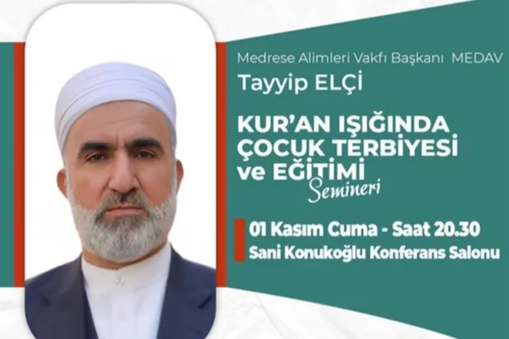 Aile Okulunun bu haftaki konuğu Medrese Alimleri Vakfı (MEDAV) Başkanı Tayyip Elçi olacak. 01 Kasım Cuma akşamı 20.30’da Sani Konukoğlu Konferans Salonunda İnegöllülerle buluşacak Tayyip Elçi, “Kuran Işığında Çocuk Terbiyesi ve Eğitimi” konulu seminerde anlatımlarda bulunacak.