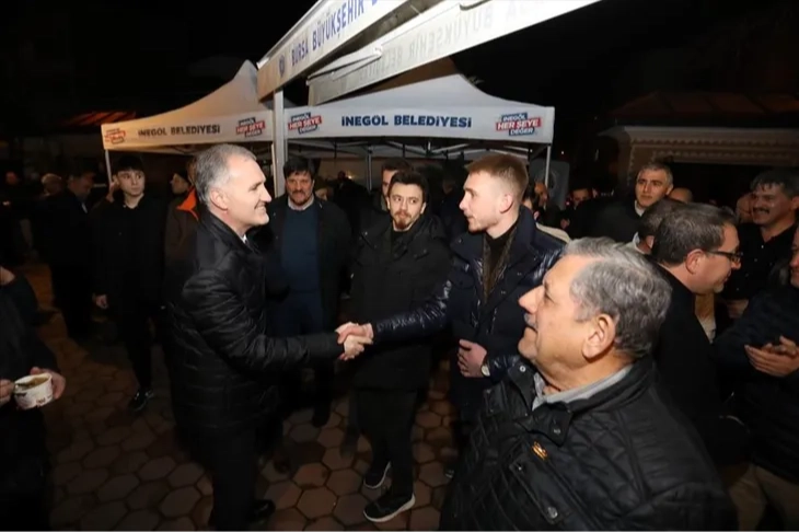 Akşam namazı sonrası başlayan mevlitte, merhum mobilyacılar dualarla yad edildi. Yatsı namazı çıkışında da cemaate helva ikramı yapıldı. İnegöl Belediye Başkanı Alper Taban, AK Parti İnegöl İlçe Başkanı Mustafa Durmuş ve Mobilyacılar Odası Başkanı Özcan Ayhan da parti ve oda yöneticileriyle beraber mevlide katıldı. Namaz sonrası vatandaşların kandilini kutlayan Başkan Alper Taban, “İslam alemi için önemli gün ve gecelerin bir arada bulunduğu mübarek üç ayların ikinci gecesinde Regaip Kandiline erişmenin huzuru içerisindeyiz. İçinde; Regaip, Miraç, Berat ve Kadir gecelerini bulunduran mübarek üç aylar, İslam dünyası için sevinç, bereket ve mağfiret mevsimidir. İnşallah bu yıl da bu duyguları yaşadığımız bir mevsimi hep beraber görürüz. Bu vesileyle bu akşam Mobilyacılar Odamız ile birlikte hem merhum mobilyacılarımız adına mevlit okutup hem de vatandaşlarımıza ikramlarda bulunmak istedik. Tüm İslam aleminin kandilini kutluyorum” dedi.