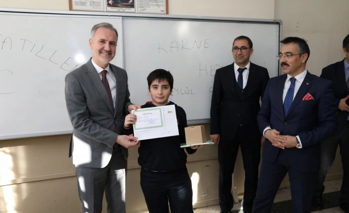 Öğrencilere karneleriyle birlikte hediye takdimleri de yapıldı.