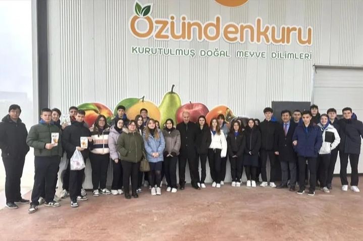 Özündenkuru meyve kurutma tesisini gezen öğrenciler meyve kurularının tadına da baktı. Özündenkuru’yu deneyimleyen öğrenciler hem tesise hem lezzete tam not verdi.
