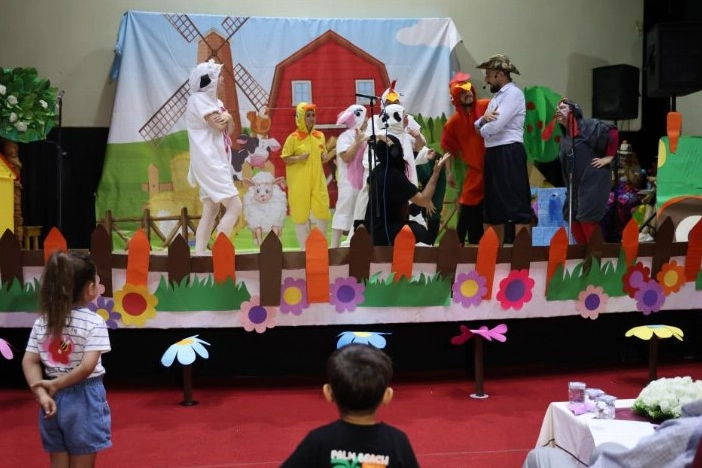 Kozan'da Zübeyde Hanım Anaokulu öğretmen ve velileri yılsonu gösterisinde farklı bir etkinliğe imza attı. Anne ve babalar çocukları için hazırladıkları çocuk tiyatrosu ile profesyonel oyuncuları aratmazken çocuklalar ailelerini hayranlıkla izledi. Tavuk rolü ile ikizleri için sahne alan anne Meltem Doğanay çocuklarını her zaman izlerken duygu dolu anlar yaşadığını bu kez onların izleyici olmasından gurur duyduğunu ifade ederek “ Heyecanlı ve Mutluyum. Çocuklarımız için bir şeyler yapmak istedik ve çok güzel bir oyun çıktı” diye konuştu.
