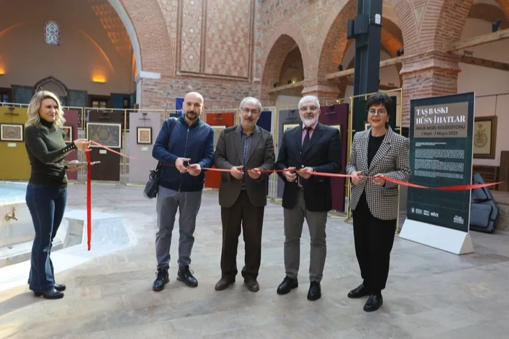 Bursa Büyükşehir Belediyesi Kent Tarihi ve Tanıtımı Dairesi Başkanlığı Müzeler Şube Müdürlüğü tarafından hazırlanan ‘Taş Baskı Hüsn-i Hatlar’ sergisi, Muradiye El Yazmaları Müzesi’nde izlenime açıldı. Sergi, Bursalı ünlü ressam ve koleksiyoner Malik Aksel’in Bursa Büyükşehir Belediyesi'ne bağışladığı taş baskı tekniğiyle hazırlanan hüsn-i hatlardan oluşuyor. Anadolu halkının kültürü ve gelenekleri doğrultusunda inanç ve duygularını dile getirmek için halk sanatçıları tarafından yapılan taş baskı resimlerinden oluşan sergi, 7 Mayıs tarihine kadar ziyaret edilebilecek. Serginin açılış törenine, Kent Tarihi ve Tanıtımı Dairesi Başkanı Güney Özkılınç, Bursa Uludağ Üniversitesi’nden Prof. Dr. Hasan Basri Öcalan, Müzeler Şube Müdürü Dilek Yıldız Karakaş ve sanatseverler katıldı. Kent Tarihi ve Tanıtımı Dairesi Başkanı Güney Özkılınç, ressam ve koleksiyoner kimliği ile Bursa’nın önemli değerlerinden olan Malik Aksel’in topladığı taş baskı eserlerden 100’e yakınının Muradiye El Yazmaları Müzesi’nde sergilendiğini belirtti. Bursalıların Malik Aksel’in koleksiyonuyla buluşmasına vesile olan Hasan Basri Öcalan’a teşekkür eden Özkılınç, “Hep birlikte Bursalılar için çok kıymetli bir çalışmaya daha imza attık. Değerli eserleri gün yüzüne çıkarıp Bursalılarla buluşturmaya devam edeceğiz” dedi. Prof. Dr. Hasan Basri Öcalan, sergi sayesinde Bursa’nın önemli sanatçılarından olan Malik Aksel’in tekrar gündeme geldiğini ifade etti. Düzenlenen etkinlik için Bursa Büyükşehir Belediye Başkanı Mustafa Bozbey’e teşekkür eden Öcalan, Aksel’in eserlerini bağışlayan oğulları Murat ve Nuri Acar’a da ayrıca teşekkür etti. Konuşmaların ardından sergi ziyarete açıldı.