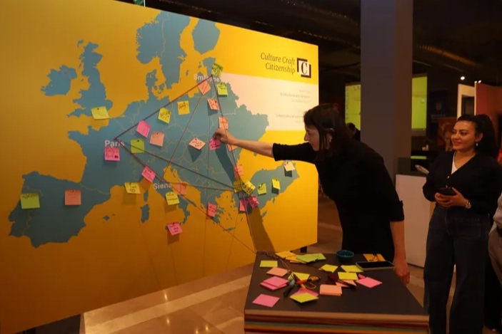 ‘KİMLİK SERGİSİ', SÜRECİ ANLATTI Projede yürütülen çalışmaların anlatıldığı görsellerle hazırlanan ‘Kimlik’ serginin açılışı, Atatürk Kültür Merkezi Merinos Yerleşkesi’nde yapıldı. Sergi ile proje boyunca ortakların kendi ülkelerinde gerçekleştirdiği uygulamaları bir araya getiren bütüncül bir deneyim sunuldu. Zanaat eğitimleri sırasında çekilen fotoğraflar, videolar ve her ülkenin kendine özel hazırladığı zanaat rotaları sergilenerek projenin süreçleri paylaşıldı.