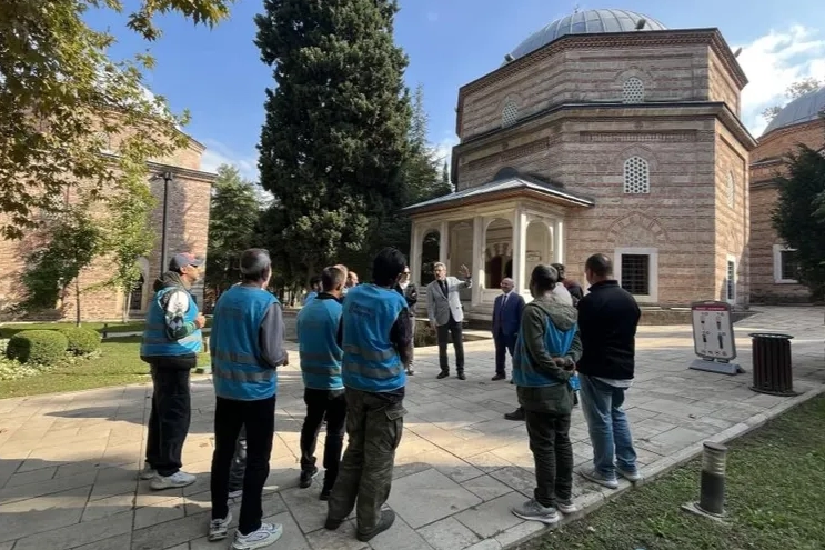 Bursa Cumhuriyet Başsavcılığı Denetimli Serbestlik Müdürlüğü ve Bursa İl Müftülüğü iş birliğinde, Camiler ve Din Görevlileri Haftası etkinlikleri çerçevesinde 'Camimi Tanıyorum, Manevi Mirasıma Sahip Çıkıyorum' projesiyle denetimli serbestlik yükümlüleri Muradiye Külliyesi'ne gezi gerçekleştirdi. Yaklaşık 10 denetimli serbestlik yükümlüsü, Bursa'nın en önemli tarihi yapılarından biri olan Muradiye Külliyesi'ni yakında tanıma fırsatı buldu. Ziyaret sırasında yükümlülere Muradiye Külliyesi'nin tarihçesi, mimarisi ve Osmanlı dönemindeki önemi hakkında bilgiyi Muradiye Camii Baş İmam Hatibi Lütfi Taşçı verdi. Katılımcılar, külliye içerisinde yer alan cami, türbeler ve tarihi yapıları gezerek milli ve manevi duygularını güçlendirdi. Denetimli Serbestlik ve İl Müftülüğü Yetkilileri, etkinliğe ilişkin yaptığı açıklamada şu ifadelere yer verdi: "Bursa Denetimli Serbestlik Müdürlüğü tarafından yürütülen manevi rehberlik faaliyetlerinin, yükümlülerin kendi farkındalıklarını artırmak ve topluma yeniden uyumlarını desteklemek amacıyla önümüzdeki süreçte de sürdürülecek." Denetimli Serbestlik Müdür Yardımcısı Zeynep Cengiz, Manevi Rehberlik Birimi Görevlisi Ömer Akpınar'ın da bulunduğu ziyarette konuşan Bursa İl Müftü Yardımcısı Mehmet Köktaş, "Fatih Sultan Mehmet Han Hazretlerinin annesinin ve ailesinin metfun bulunduğu türbeleri ziyaret ettik. Muradiye Külliyesi'nin müştemilatındaki kabirleri ziyaret ettik. Manevi yönden buraya gelenlere bilgiler vermiş olduk. Bu projenin yayılarak devam etmesini arzu ederiz. Allah onlara da yardım etsin. İyi bir insan olarak yaşamayı nasip etsin" dedi.