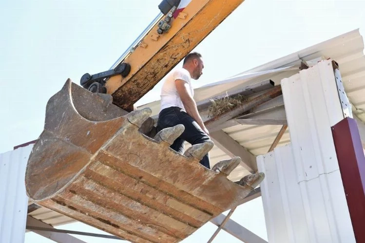 İsmetiye Mahallesi’nde fabrika binası olarak kullanılmak üzere yapılan yapının kaçak olduğunu tespit eden Osmangazi Belediyesi ekipleri kanuni işlemlerin ardından çıkan yıkım kararını yerine getirmek üzere bölgeye gitti. Verimli tarım toprakları üzerine inşa edilen kaçak fabrika binasının yıkımına başlayan belediye ekipleri iş makinelerini çalıştırdı. Duvarı yıkmak için kepçesini kaldıran iş makinesi operatörü kiriş arasında büyükçe bir kuş yuvası olduğunu fark etti.