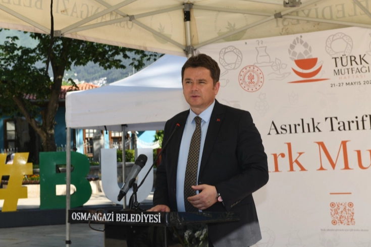 Birlik ve beraberlik sofrada başladığını ifade eden Osmangazi Belediye Başkanı Erkan Aydın, “Ortak sofralar, ortak değerler demek. Bizleri bir araya getiren yemeğin etrafında kurulan muhabbet, paylaşım ve kültür günümüzde hızlı yaşam tarzı ve ekonomik zorluklar geleneksel sofraları gölgede bıraksa da, bizler köklerimizden aldığımız güçle kültürümüze sahip çıkmaya devam ediyoruz. Bursa mutfağının kendine has tatları; kuzu etiyle hazırlanan nefis yemekler, kestane ve enginarın uyumuyla ortaya çıkan özel lezzetler, Bursa inciriyle taçlanan tatlılar yalnızca damaklarımızı değil, kalplerimizi de doyuruyor. Türk Mutfağı Haftası kapsamında, Kültür ve Turizm Bakanlığı ile Bursa Valiliği iş birliğinde Tophane Meydanı’nda düzenlediğimiz etkinlikte bu ortak mirası yaşatmanın mutluluğunu yaşadık. Sofralarda buluşmamıza vesile olan herkese teşekkür ediyorum” dedi.