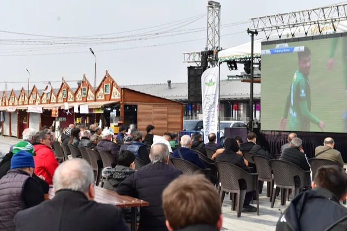 Ramazan ayı süresince düzenlenen çeşitli aktivitelerle Bursa’da adeta bir cazibe noktası haline gelen Osmangazi Meydanı, bu kez yeşil-beyaz sevdasını paylaşan taraftarları ağırladı. Kentin en önemli değerlerinden Bursaspor’a olan desteğini her alanda sürdüren Osmangazi Belediyesi, yeşil beyazlı takımın Nesine 2. Lig’in 28. Haftası’nda deplasmanda karşılaştığı Akedaş Kahramanmaraş İstiklal Spor mücadelesine özel olarak Osmangazi Meydanı’nda dev ekran kurdu. Maç saatine yaklaşırken meydanda toplanan Bursaspor taraftarları, takımlarına destek verdi. Kurulan dev ekranda karşılaşmayı takip eden Osmangazili vatandaşlar, 90 dakika boyunca büyük bir heyecan yaşadı. Aileleri ve arkadaşlarıyla birlikte meydana gelen vatandaşlar, Bursaspor sevgisini birlikte paylaştı.