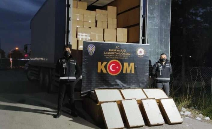 Bursa İl Emniyet Müdürlüğü Kaçakçılık ve Organize Suçlarla Mücadele Şube Müdürlüğü, Kaçakçılık Suçları Büro Amirliği, Analiz ve İstatistik Büro Amirliği ve İstihbarat Şube Müdürlüğü ekipleri 1 Şubat günü Adana'dan Bursa'ya fabrikasyon olarak sarılmış olan bir tır dolusu sigara getirileceği istihbaratı aldı. İstihbarat üzerine harekete geçen ekipler, Z.A. ve K.D.'ye ait olduğunu tespit ettikleri ve takibe aldıkları TIR'ı düzenledikleri operasyonla Bursa il girişinde durdurdu. Araçta yapılan aramalar sonucu fabrikasyon olarak sarılmış ve kartonlara paketlenmiş 8 milyon 250 bin adet sigara ele geçirildi. Bu sigaralar 412 bin 500 pakete karşılık gelirken, piyasa değeri yaklaşık olarak 5 milyon 500 bin lira olduğu öğrenildi. Polis ekipleri 8 milyon 250 bin adet sigaraya ve yüklü olan TIR'a el koyarak otoparka çektirdi. Düzenlenen operasyonda Z.A. ve K.D. ifadeleri alınmak üzere gözaltına alındı.