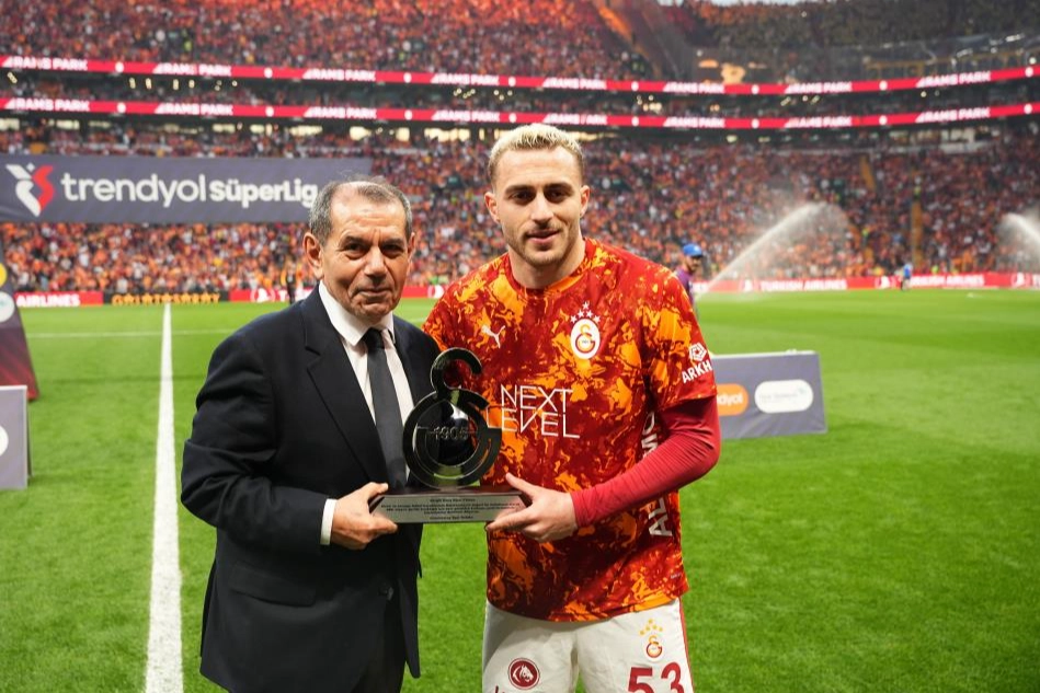 Trendyol Süper Lig’in 31. haftasında Galatasaray’ın evinde Fenerbahçe ile oynadığı karşılaşma öncesinde sarı-kırmızılı futbolcu Barış Alper Yılmaz için tören düzenlendi. Galatasaray Başkanı Dursun Özbek, saha kenarında yapılan organizasyonda, ligin 29. haftasında RAMS Park'ta oynanan Kocaelispor müsabakasıyla sarı-kırmızılılarda 200. resmi maçına çıkan Barış Alper'e plaket takdim etti. Başkan Özbek ayrıca 25 yaşındaki futbolcuya, üzerinde 100 yazılı forma hediye etti.