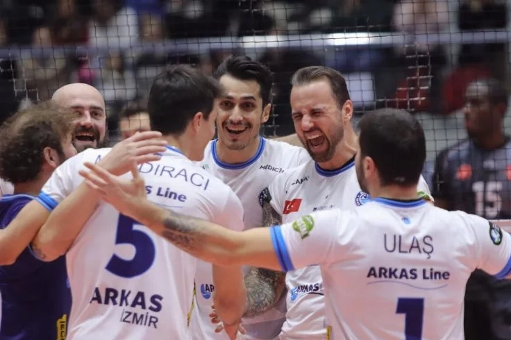AXA Sigorta Kupa Voley Erkekler Finalleri’nde Arkas Spor, Ziraat Bankkart’ı 2-0 geriye düştüğü maçta 3-2 yenerek adını finale yazdırdı. Bursa Cengiz Göllü Voleybol Salonu’ndaki mücadelenin setleri 23-25, 30-32, 25-23, 25-20 ve 15-11 sonuçlandı. Karşılaşmayı Gyorgy Grozer 26 sayıyla tamamlarken, bu oyuncuyu 24 sayıyla Efe Mandıracı, 14 sayıyla Burutay Subaşı takip etti. Kupa Voley'de final karşılaşması yarın saat 17.00'de Bursa Cengiz Göllü Voleybol Salonu'nda oynanacak. Hakemler: Sadettin Deneri, Oğuzhan Ahmet Ünal Arkas Spor: Ulaş Kıyak, Efe Mandıracı, Ertuğrul Gazi Metin, Burutay Subaşı, Gyorgy Grozer, Nikolay Kartev (Ahmet Karataş, Nicholas Hoag, Ulaş Onur Topbaşlı, Jordan Canham) Ziraat Bankkart: Arslan Ekşi, Ter Maat Wouter, Bedirhan Bülbül, Faik Samet Güneş, Oreol Camejo, Matthew Anderson (Berkay Bayraktar, Oğulcan Yatgın) Setler: 23-25, 30-32, 25-23, 25-20, 15-11 Süre: 143 dakika (33, 35, 29, 28, 18)