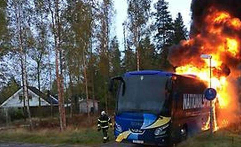 Milli takım oyuncularının kamp yaptığı alana yakın bir noktada alev alan takım otobüsüne hemen müdahale edildi.Nedeni henüz belirlenemeyen yangın kısa sürede kontrol altına alındı ancak araç kullanılamaz hale geldi. Yapılan açıklamada park halindeki araçta olay sırasında şans eseri kimsenin bulunmadığı belirtildi.Yarın Bulgaristan ile oynayacağı maç için kampta bulunan İsveç Milli Takımı oyuncuları takım otobüsünün yandığını öğrenince büyük bir şok yaşadı.