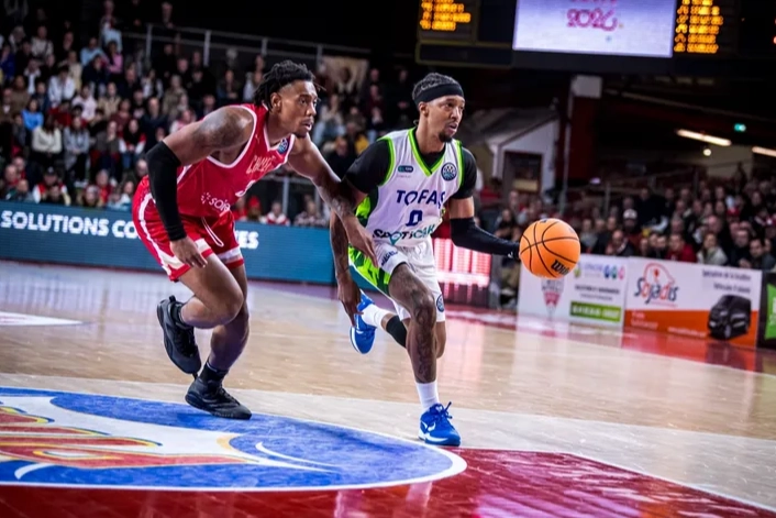 TOFAŞ Basketbol Takımı, Basketball Champions League (BCL) play-in eleme turu serisi ikinci maçında Fransız temsilcisi Cholet Basket’e konuk oldu. Hava koşullarından dolayı her iki kulübün de seyahat programının aksaması nedeniyle bir gün ertelemeli olarak oynanan karşılaşmada La Meilleraie’ye Alex Perez, Hugo Besson, Tolga Geçim, Yiğitcan Saybir, Marek Blazevic beşiyle maça başlayan Bursa ekibi, ilk basketini Marek Blazevic ile buldu. Rakip sayılarına Hugo Besson, Marek Blazevic ve Tolga Geçim ile karşılık veren Mavi Yeşilliler, 4. dakikada 9-10 öne geçerken, Marek Blazevic, Furkan Korkmaz ve Isaiah Whaley’in sayıları sonrası çeyrek sonunda 9-0’lık bir seri bulan ev sahibi takım, ilk periyodu 25-16 üstünlükle kapattı.