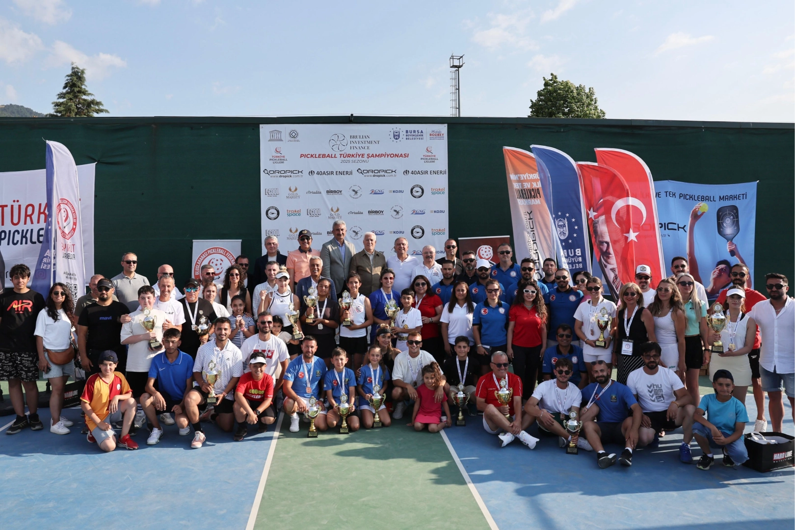 Birçok ülkede resmi federasyonu bulunan, ulusal ve uluslararası birçok organizasyonu düzenlenen pickleball sporunda, Türkiye Şampiyonası heyecanı yaşandı. Türkiye Pickleball Ligleri Komitesi öncülüğünde, 41 ilde düzenlenen lig karşılaşmalarına 1.500'den fazla sporcu katıldı. Yerel liglerin ardından illerinde dereceye giren sporcular Ankara, Denizli, Şanlıurfa, Mersin ve Bursa’da gerçekleştirilen bölgesel liglerde boy gösterdi. Lig karşılaşmalarının ardından rakiplerine üstünlük kuran 60 sporcu, Uluslararası Pickleball Federasyonları Türkiye Temsilciliği ile Bursa Büyükşehir Belediyesi iş birliğinde yapılan yarı final ve final maçlarında kıyasıya mücadele etti. Mihraplı Pickleball Kortları’ndaki karşılaşmalar büyük heyecana sahip olurken, sporcular tüm yeteneklerini kullanarak dereceye girebilmek için yarıştı. Turnuva sonunda 14 Yaş Üstü Tek Erkekler, 14 Yaş Üstü Tek Kadınlar, 14 Yaş Üstü Çift Karışık, 8-13 Yaş Tek Erkekler, 8-13 Yaş Tek Kızlar kategorilerinde dereceye giren sporculara ödülleri takdim edildi. Ödül törenine; Bursa Büyükşehir Belediye Başkanı Mustafa Bozbey’in yanı sıra Vali Yardımcısı Rıza Gençoğlu, CHP İl Başkanı Nihat Yeşiltaş, Uluslararası Pickleball Federasyonları Türkiye Temsilcisi Davut Güngör, Gençlik ve Spor İl Müdürü Rahmi Aksoy, Büyükşehir Belediyesi Genel Sekreter Yardımcısı Mehmet Yıldız, Büyükşehir Belediyesi yöneticileri, Pickleball Federasyonu yetkilileri, sponsor firmaların temsilcileri ve sporcular katıldı. “Dereceye giren sporcularımızı kutluyorum” Babalar Günü’nü kutlayarak konuşmasına başlayan Başkan Mustafa Bozbey, şampiyonaya katılan tüm sporcuları tebrik etti. Bursa’yı sporun başkenti yapma konusunda adım adım ilerlediklerini söyleyen Başkan Mustafa Bozbey, pickleball sporu için de destek vermeye devam edeceklerini belirtti. Gençlerin ve çocukların en az bir spor dalıyla ilgilenmesini arzuladıklarını ifade eden Başkan Bozbey, “Bu şekilde iyi birer birey ve iyi insan olmalarını sağlamış oluruz. Ailelerimiz de mutlaka çocuklarını spora yönlendirsin. Dereceye giren sporcularımızı kutluyorum. 41 şehirden yaklaşık 50 takım ve 60 civarında sporcunun katılımıyla iyi bir turnuva oldu. Büyükşehir Belediyesi olarak bu tür etkinliklere ev sahibi olmaya devam edeceğiz” dedi.