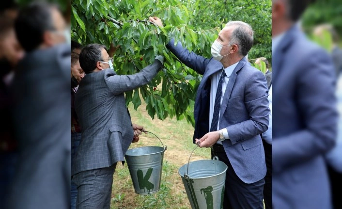 Tarım şehri İnegöl’de yaz aylarıyla beraber hasat sezonları da başladı. Çileğin ardından kiraz hasadının da startı verildi. Belediye Başkanı Alper Taban, beraberindeki Kaymakam Eren Arslan, AK Parti İlçe Başkanı Mustafa Durmuş, İlçe Tarım Müdürü İbrahim Ekren ve Muhtarlar Derneği Başkanı Sami Çakmak ile Dipsizgöl Mahallesinde tarlada kiraz toplayan üreticileri ziyaret etti.