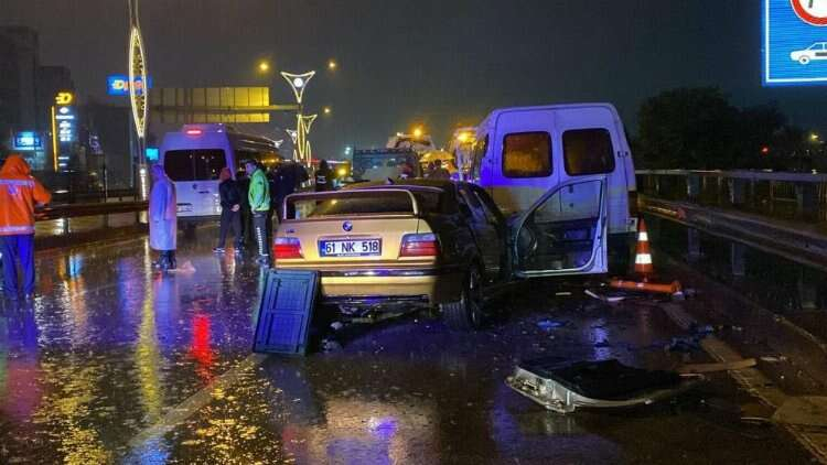 Bu esnada karayolları ve büyükşehir belediyesine ait araçlara 2 otomobil ile minibüs çarptı. Meydana gelen zincirleme kazada 61 NK 518 plakalı otomobildeki 3 kişi ile belediyeye ait kamyonetteki 2 personel yaralandı. İhbar üzerine olay yerine çok sayıda sağlık, itfaiye ve polis ekibi sevk edildi. Kısa sürede olay yerine gelen sağlık ekipleri, yaralanan 5 kişiyi ambulansa hastaneye kaldırdı.