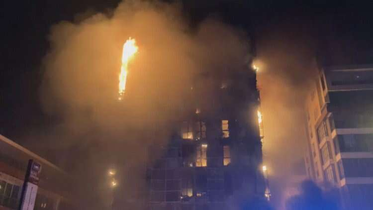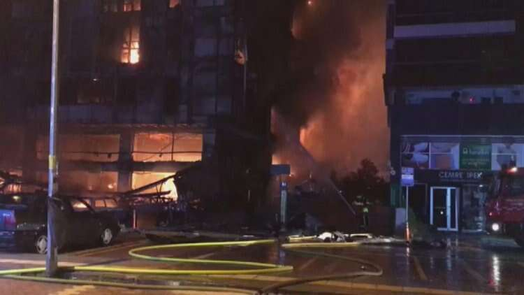 Çevik kuvvet ekipleri ekipleri bölgede güvenlik önlemi alırken itfaiye ekipleri yangına 25 araç 70 personel ile müdahale etti. Binanın altındaki kafede başlayan yangın önce dış cepheye ardından ofislere sıçradı. Binanın dış cephesinin kompozit olması nedeniyle yangın büyüyerek yayıldı. Yangının büyümesi üzerine alevler yan taraftaki binaya sıçradı. Bina tedbiren boşaltılırken itfaiye ekiplerinin 1 saatlik çalışması sonucu yangın kontrol altına alındı.