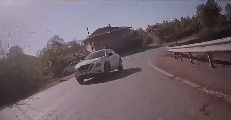 Akılalmaz olay, Bursa'nın Keles ilçesi Alaçam yolu üzerinde meydana geldi. Motosikletiyle gezintiye çıkan Serdar D., karşıdan gelen aracın şeridine aniden girmesi üzerine direksiyonu kırarak ölümden döndü. Bu yaşanan olaydan yaklaşık 20 sonra yine aynı durumla karşılaşan sürücü, saniyeler içinde iki kez ölümden döndü. Kazayı kıl payı atlattığı anlar ise motosikletin kamerasına yansıdı.