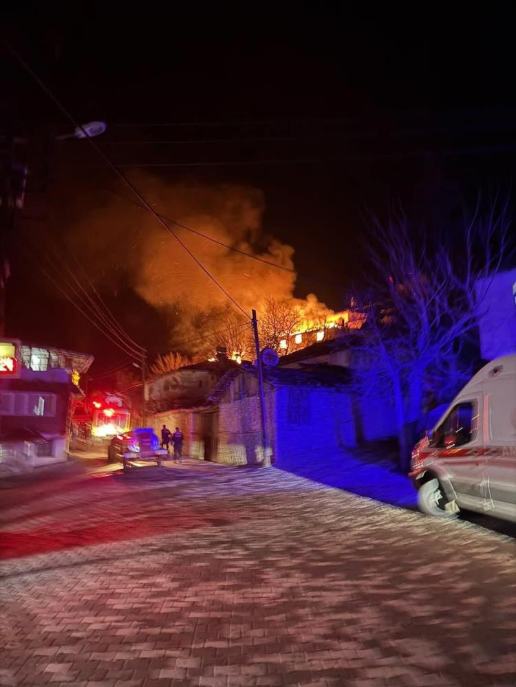 Bursa'nın Keles ilçesindeki ahşap bir evde çıkan yangında mahsur kalan 2 kişi kurtarılırken, alevlere teslim olan ev küle döndü.