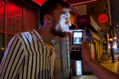 Bursa'da trafik ekiplerinin uygulama yaptığını gören alkollü sürücü, aracını park edip alkollü mekana girdi. Bir süre sonra dışarı çıkan sürücü, alkolmetreyi de üflüyormuş gibi yaptı.