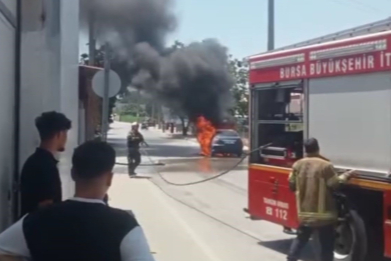 Bursa’da araç alevlere teslim oldu, nedeni araştırılıyor