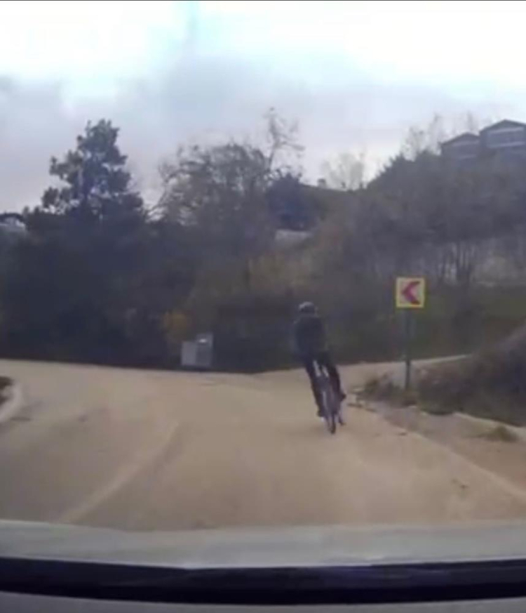Bursa'nın Mudanya ilçesinde meydana gelen kazada bir bisiklet sürücüsü ağır yaralandı. Bisikletli gencin karşı şeride geçip otomobile çarpmamak için su giderine savrulduğu anlar kameraya yansıdı. Bisikletli genç yaralı olarak kurtuldu.