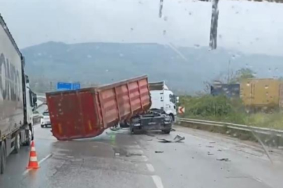 Bursa'nın Gemlik ilçesinde seyir halindeki tırın damperi açılarak üst geçide çarptı. Kaza sonrası trafik tek şeritten ilerlerken, tır çekici yardımıyla yoldan kaldırıldı.